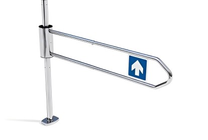 Le portillon indexé : le bras reste bloqué et ne revient pas automatiquement. Utilisé aux caisses de sortie ou pour condamner un passage tout en maintenant une issue de secours.